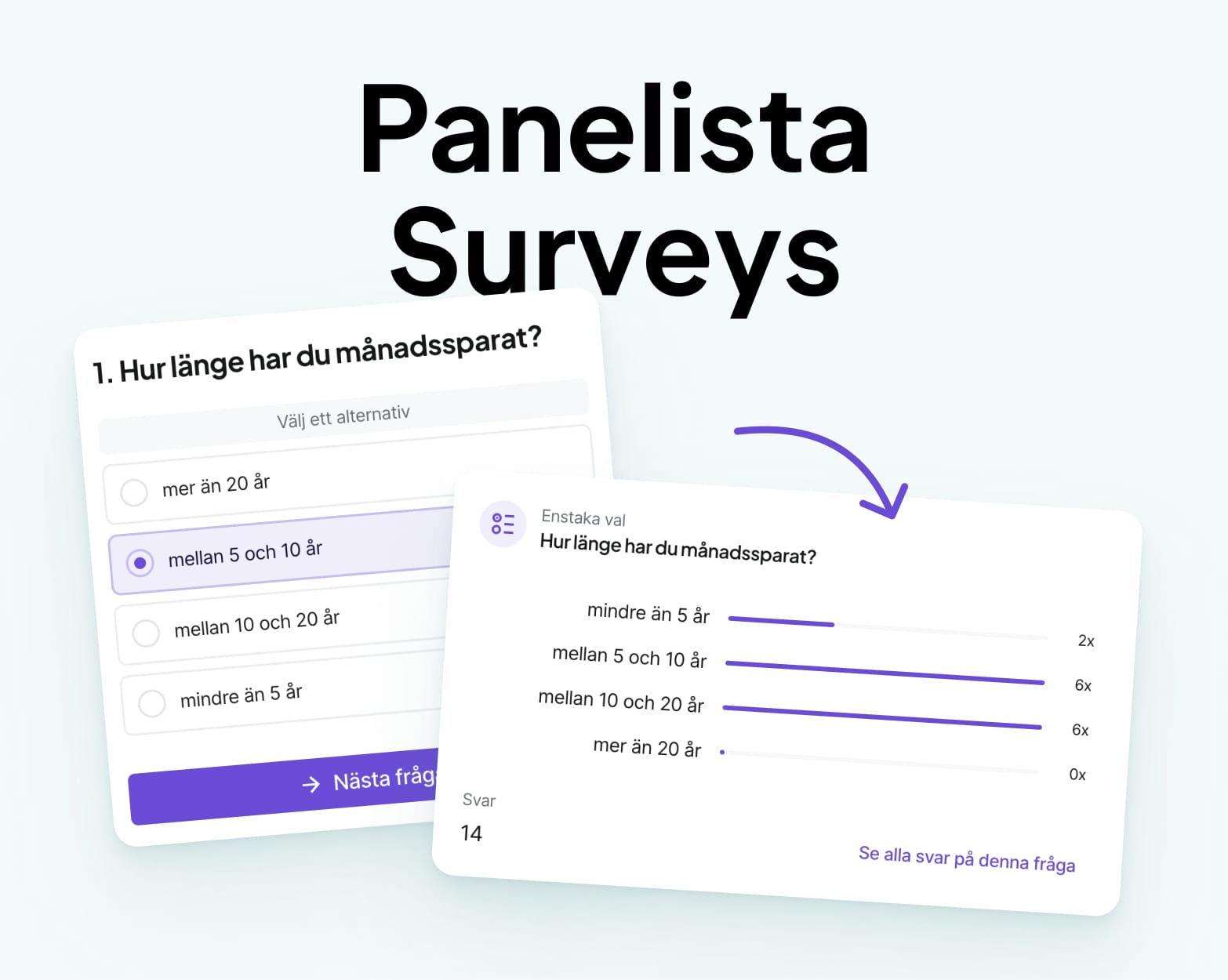 Med Panelista surveys kan du ställa en serie frågor till din målgrupp, både med olika svarsalternativ och fritextsvar för att uppmuntra till mer detaljerade svar. En survey kan exempelvis placeras som en QR-kod på ett evenemang, som en knapp på en webbplats eller skickas ut via e-post med en klickbar länk. Placeringen av din survey beror helt enkelt på var din målgrupp finns.